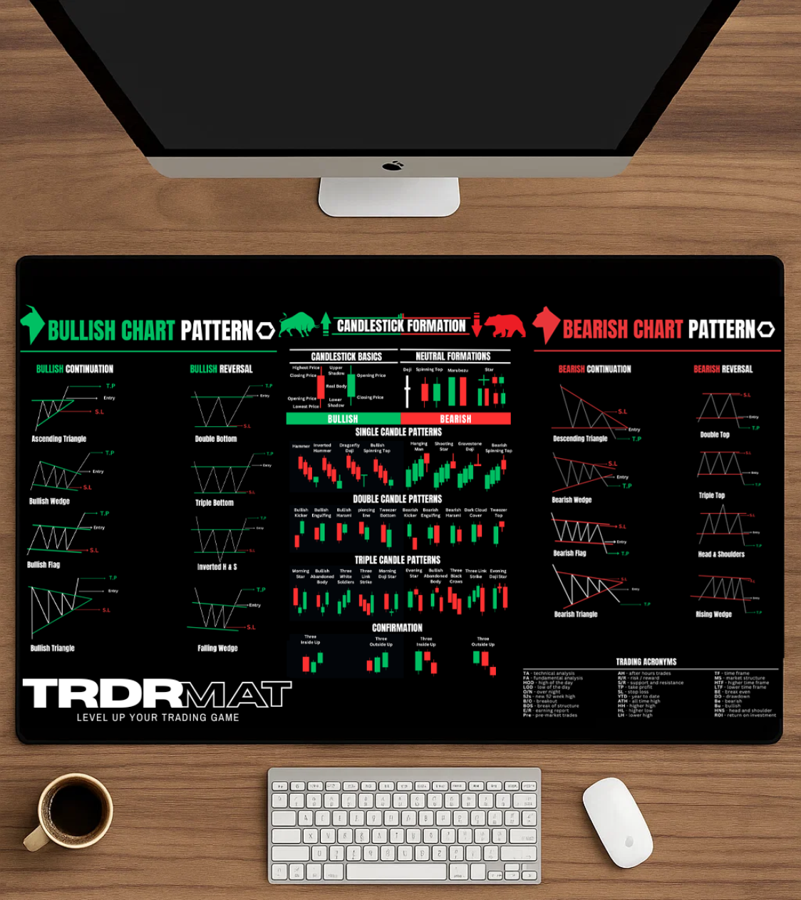 Specifically crafted with essential Forex, crypto, and stock patterns right at your fingertips — no other mat offers this level of built-in trading insight.